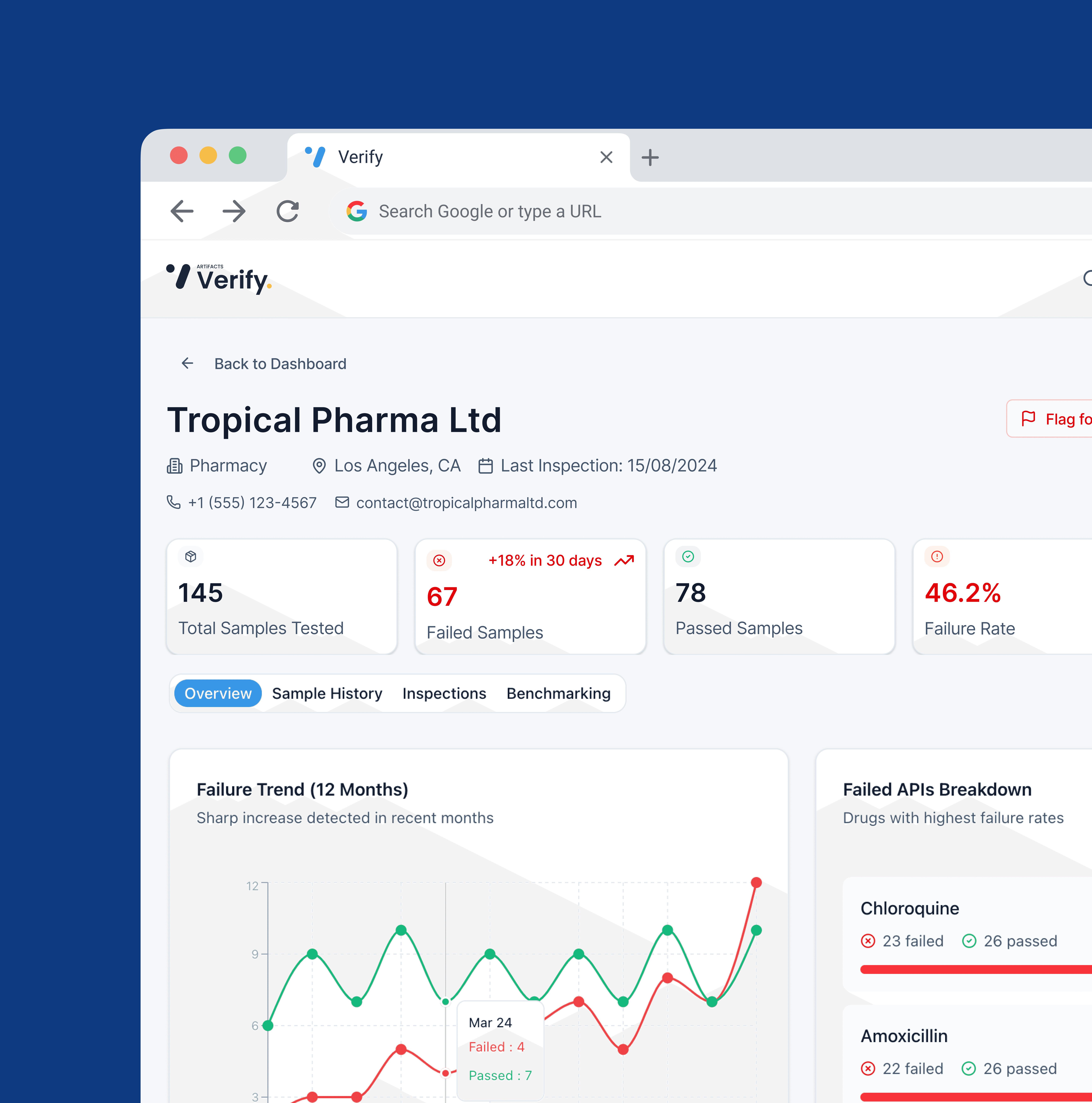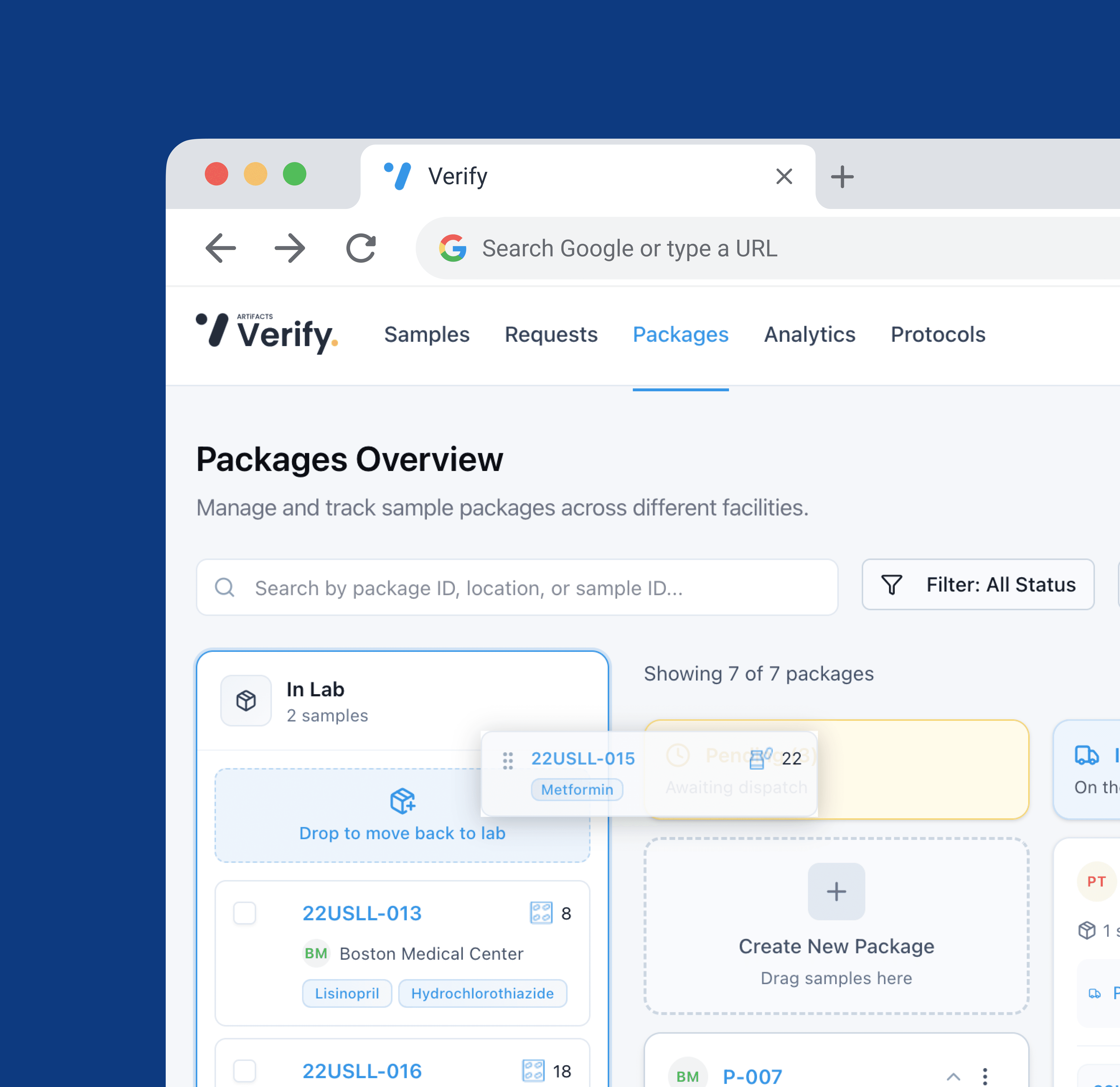 artifacts verify is a blockchain-based platform designed to detect falsified and low-quality medicines after they enter the market. the goal was to turn a complex, regulation-heavy process into a clear and reliable system for managers, labs, and authorities — ensuring trust in every step.